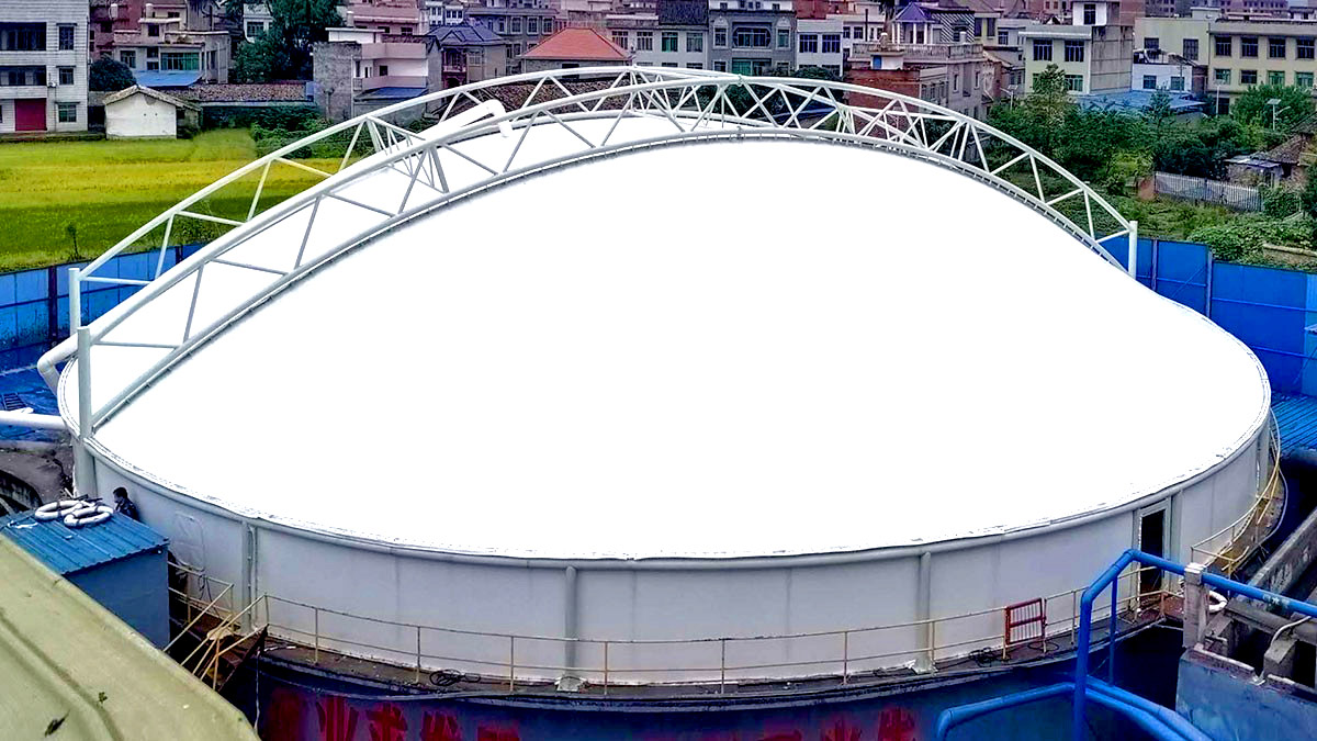 降低運營成本:雙膜密封罩可防止工業水曝氣池加蓋后,夏季水溫升高,危及微生物生存環境;亦可用于市政污水冬季保溫,降低水處理費用。